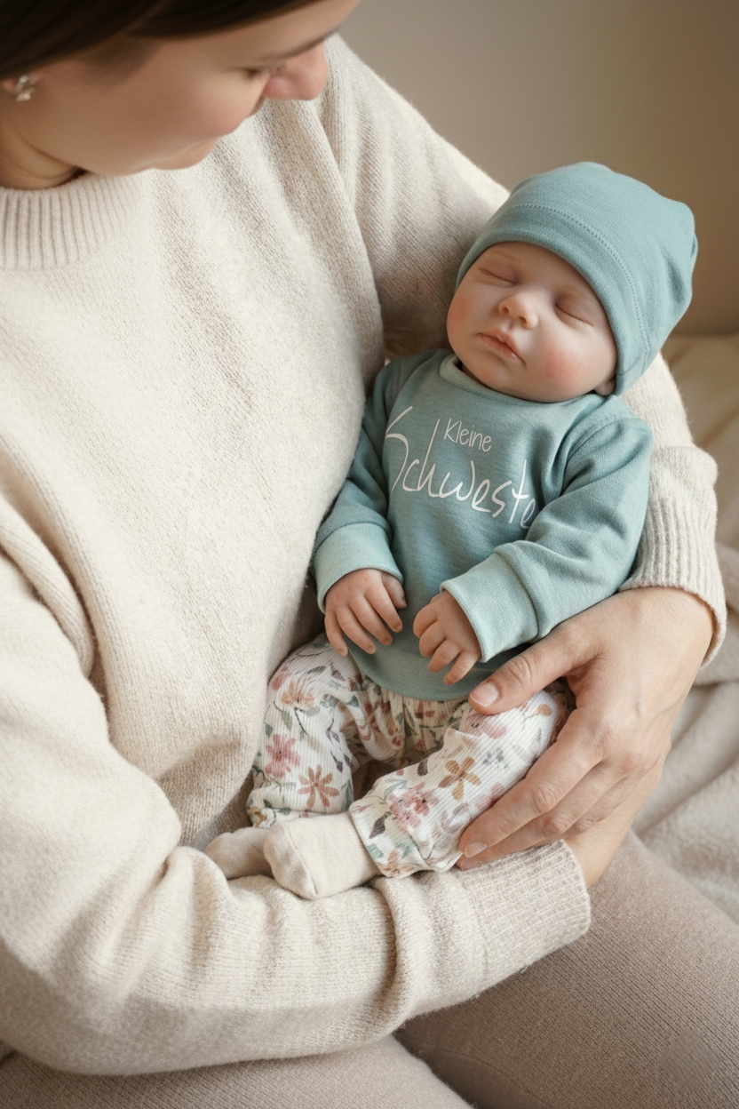 Mit diesem dreiteiligen Schwestern-Set bist du von Kopf bis Fuß perfekt angezogen – ob zur Geburt der kleinen Schwester, für das Familienshooting, den Kita-Alltag oder einfach für gemütliche Kuscheltage zu Hause.